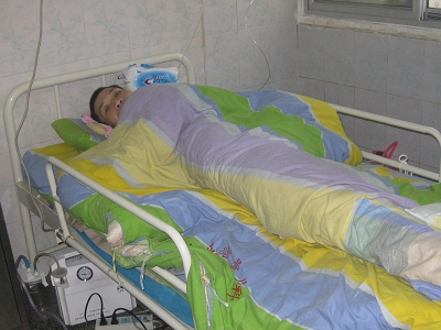 我是魏运沅,男,38岁,家住江西省上犹县寺下镇龙潭村上寨村民小组,家有2人,一个5岁男孩,父亲早年去世,妻子离异,母亲在2013年12月31日突发心脏病在县中医院去世。在我办理母亲丧事的时候,因身体劳累家里又没钱,加上我之前有癫痫病,2014年元月5日晚上住我堂哥家,次日凌晨2点左右起来小便,癫痫病又发作,从二楼摔下一楼,及时由寺下镇卫生院救护车送至上犹县人民医院,经CT检查诊断为颈椎6、7节骨折,胸部以下瘫痪。当天上午10时送至赣州市人民医院,CT确诊为颈椎6、7节骨折,治疗期间进行了两次手术。因卧床时间长,肺部已被感染,出现呼吸困难,元月31日医师经过病人家人同意被迫切开气管进行吸痰,2月9日病情好转转回到上犹县人民医院继续治疗,现在已花费医疗费用15万元以上,现胸部以下还是瘫痪,生活不能自理。按照2014年上犹县新型农村合作医疗住院补偿政策意外伤每人每年最高只准报6000元。余下14万多元我自己难于承受,加之没有固定工作,又有癫痫病,治疗这些费用是亲戚帮助借来的钱。小孩也没人抚养,已经面临绝境。