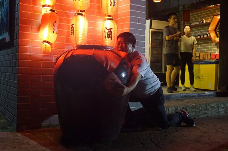 一把抱住这个比自己身子还大的酒埕幻想自己将里面的酒一饮而尽