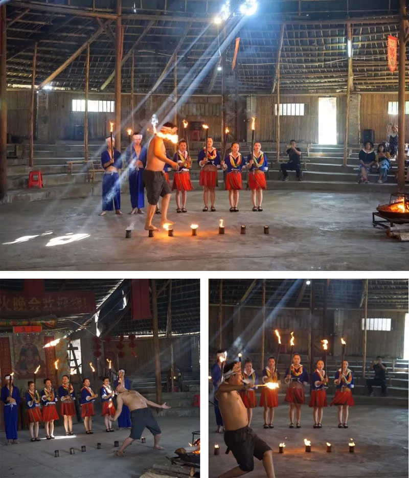 离开紫云仙境,我们来到了土瑶寨的篝火晚会欣赏他们的“火辣辣表演”。